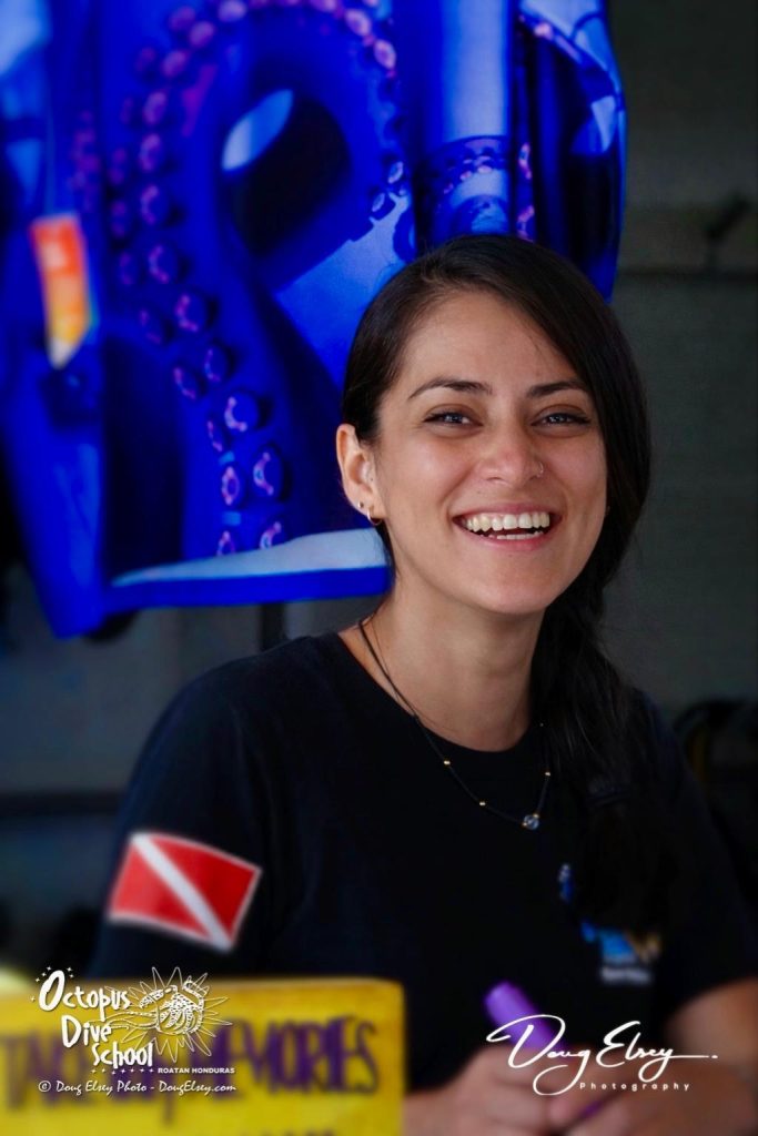 Nuria is from Spain. She first tried diving in 1999 in Utila. She loved it so much that she stayed and within six months became a Divemaster.  Then, she left for Egypt to complete her Instructor training in 2001 and began teaching in the Red Sea. Since then, she took the scenic route back to the Bay Islands, stopping to teach in Mexico, Kenya, The Canary Islands, then Utila again. Finally, she made it back here to Roatan, where she realized a personal dream and opened up her very own dive school.